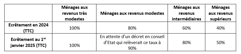 A partir du 1er janvier 2025, les taux d’écrêtement évolueront, ce qui permettra une meilleure prise en compte des aides locales. Le tableau ci-dessous présente les taux d’écrêtement actuel et les nouveaux seuils applicables à partir de janvier.